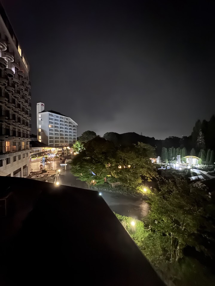 終わって、お風呂入ってから懇親会。ヘリテイジの宿泊棟の天空の湯は初めて。