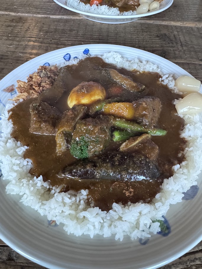 お昼、茄子おやじのカレーが久しぶりに食べたくなり小川町まで移動。