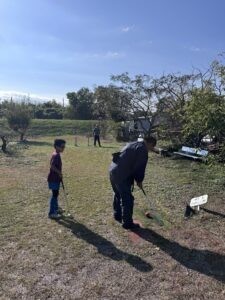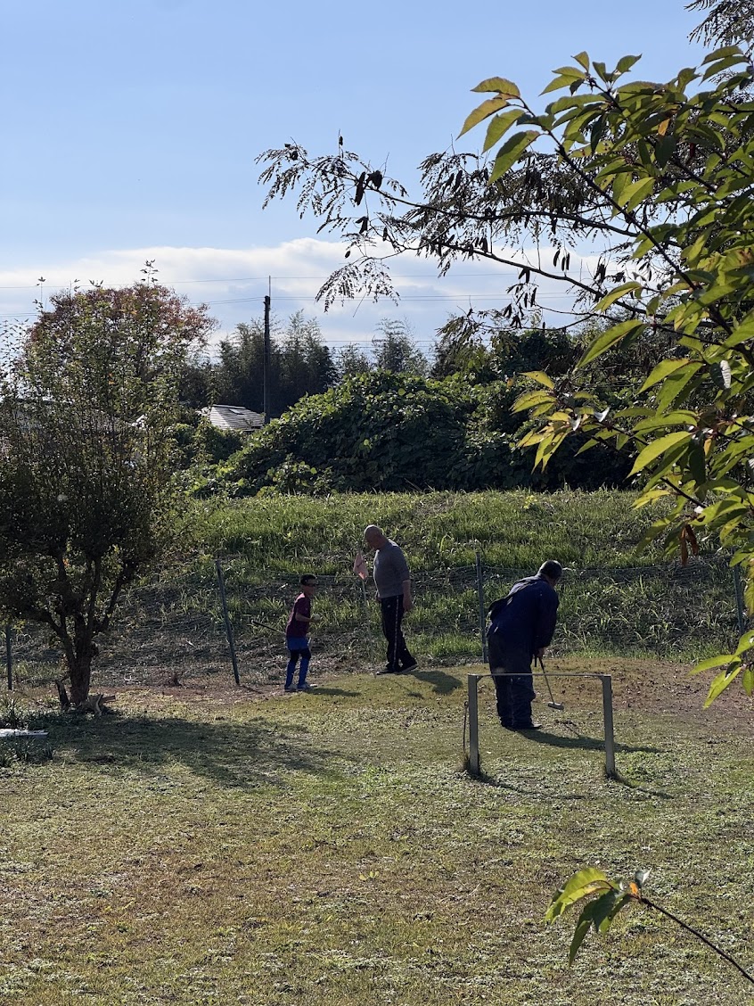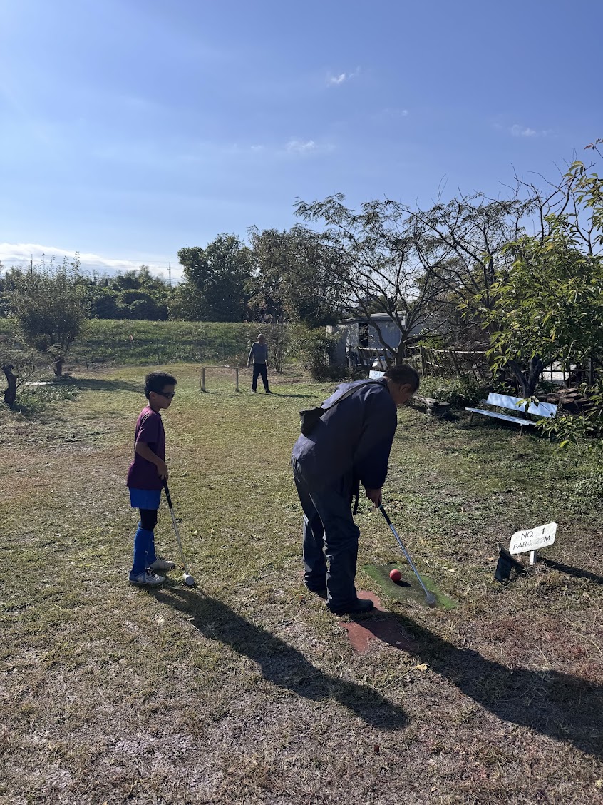 練習後のお迎え行って、先日のBBQで仲良くなったおじさんとマレットゴルフをするというので、再度、河川敷に連れていく。
