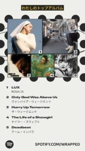 今年のSpotifyの一年が公表されていた。確かにLUXはずっと聴いていた。