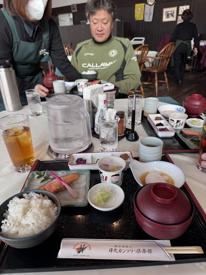 朝風呂入ってから8時頃出発。朝食はゴルフ場で。ゴルフ場は当然に日光カンツリー倶楽部。
