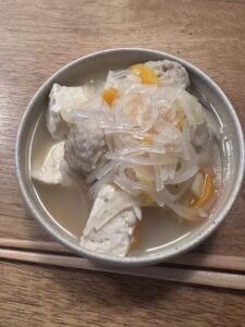 朝食、昨日の夕飯残り。