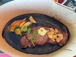 ステーキ、ライスは抜き。寒い中、何とか終了。