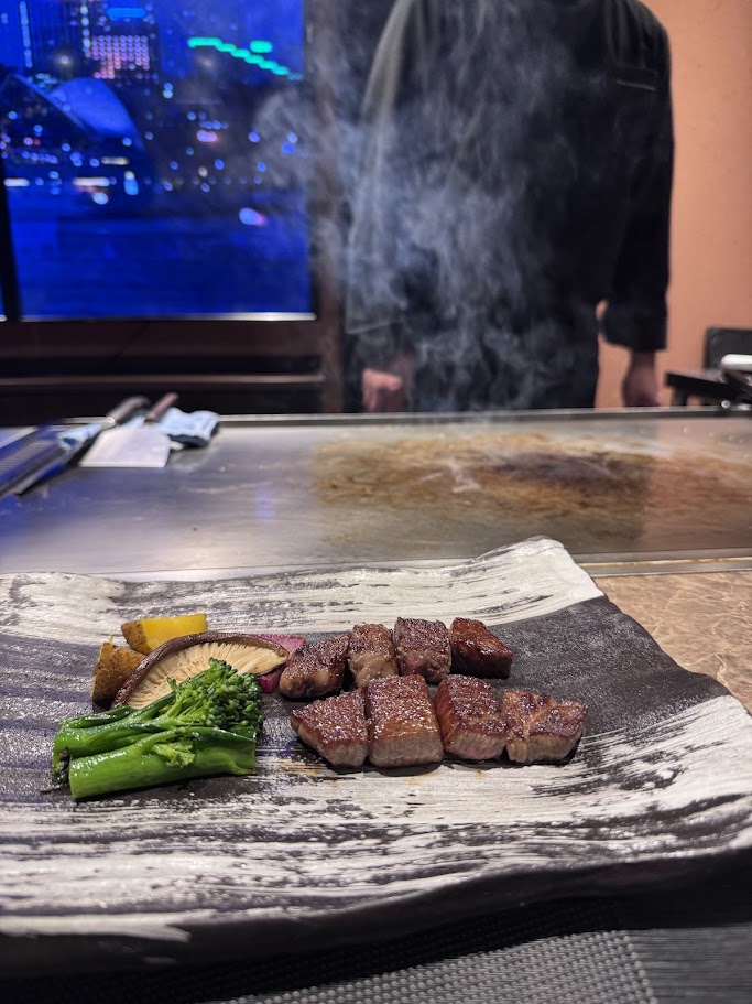 ステーキ、ライスは抜き。寒い中、何とか終了。