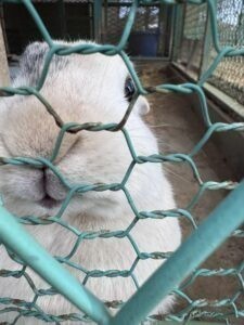 お迎え時の玉川小学校のうさぎ。