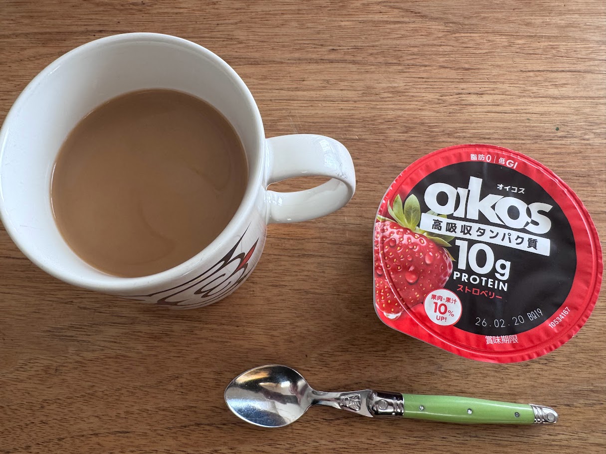 朝食、たんぱく質補給が不足しているがお腹減っていないのでこれで済ませる。良くない傾向である。