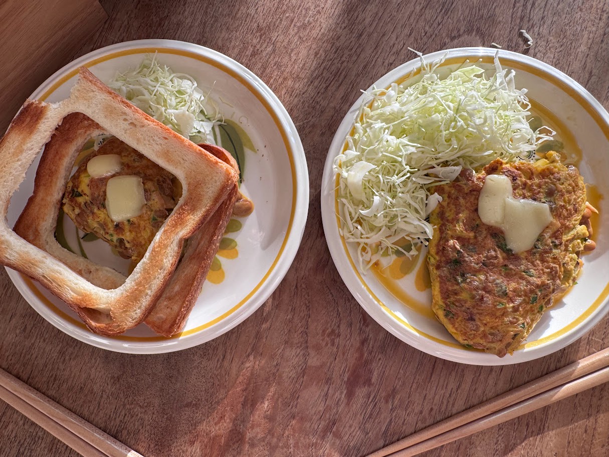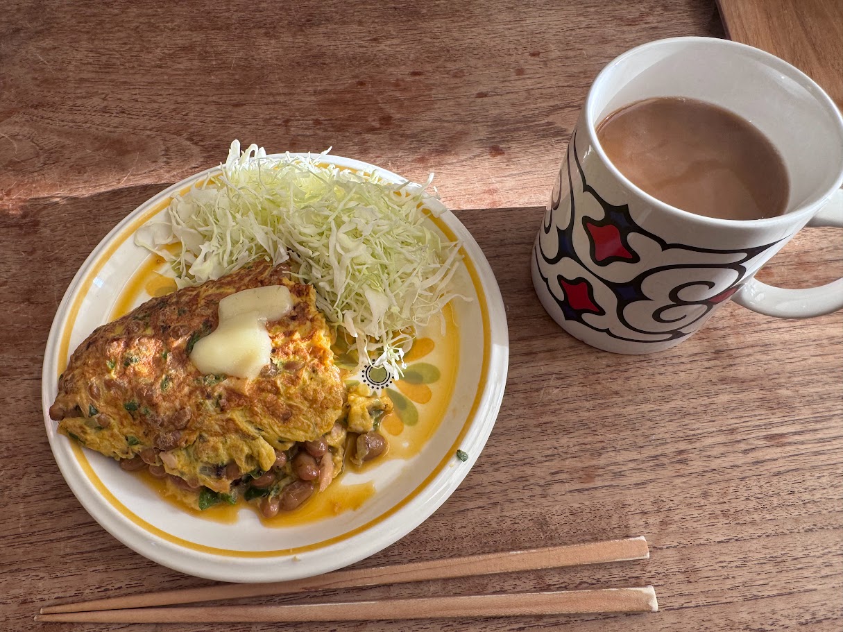 7時半前には帰宅して朝食と朝の準備。納豆オムレツ。