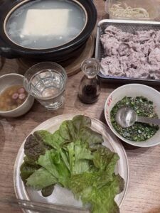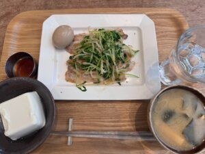 夕飯。ニラのタレが美味しかった。