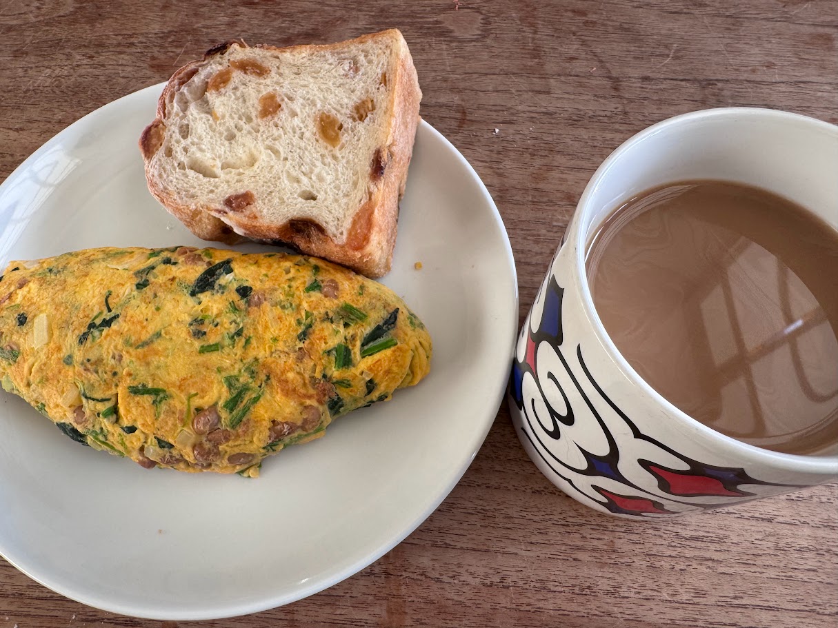 帰宅して朝食。