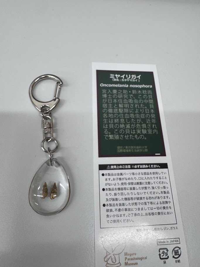 昨日のお土産のミヤイリガイのキーホルダー