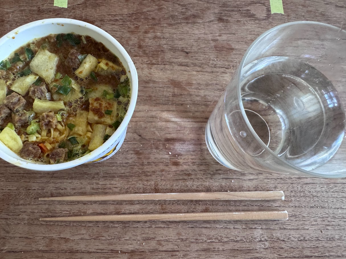 そのまま仕事でお昼はカップヌードルで過ごす。