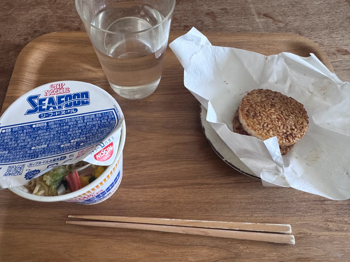 お昼、よくない食べ物だが時間がなく仕方なし。