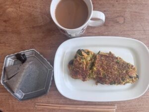 ゆっくり起床。朝食。かたいオムレツが好きです。