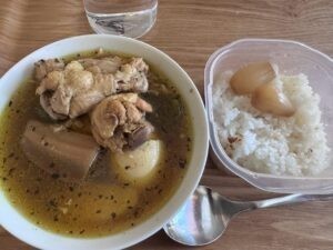 お昼、スープカレー。スパイシーで美味しい。お肉も柔らかくてとても美味。