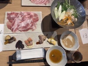 終わってランチにしゃぶしゃぶ食べながら利き酒。
