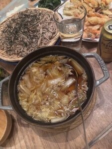 夕方から年越しそばの準備。茹でながら乾杯。
