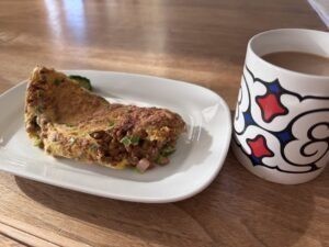 朝食、納豆オムレツ。一番美味しい。